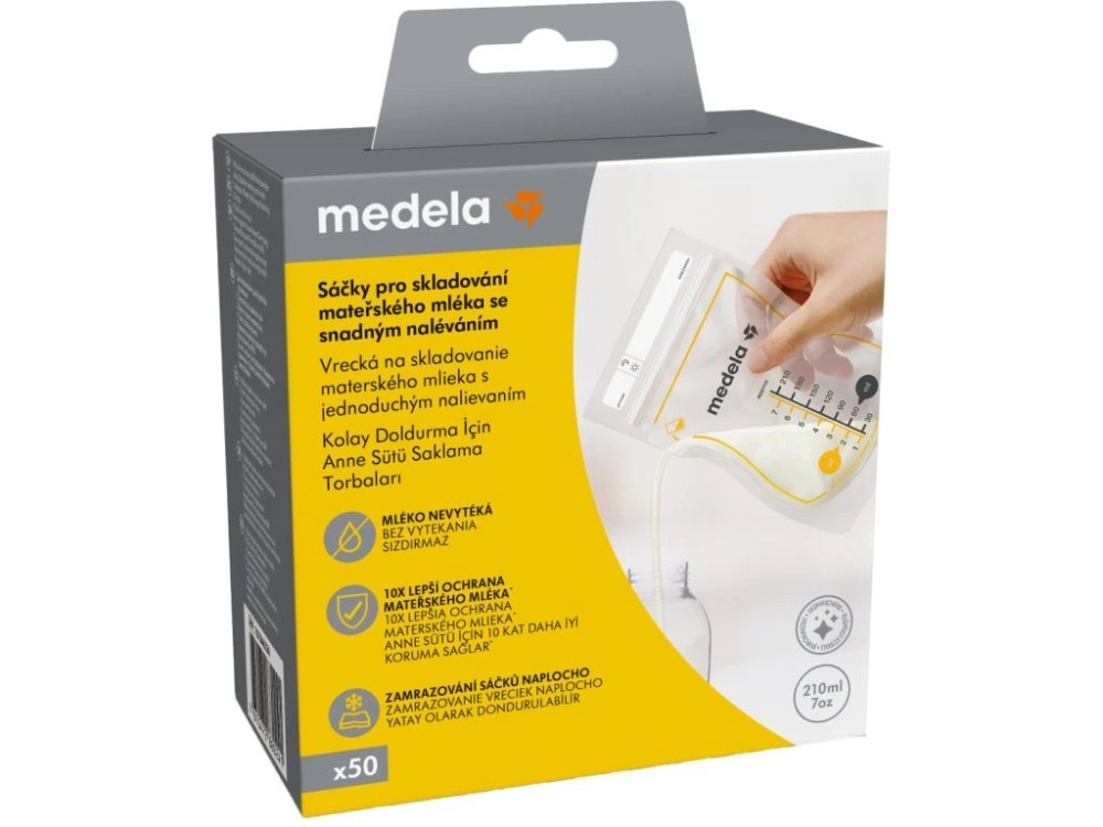 Mit den Easy Pour Muttermilchbeuteln können Sie frisch abgepumpte Muttermilch im Gefrier- oder Kühlschrank aufbewahren. Die einzigartigen Milchgießöffnungen gewährleisten eine einfache Verwendung und Handhabung ohne Verschmutzung.Merkmale- Undurchlässig- Einfaches einhändiges Eingießen und Ausgießen – dank der patentierten Öffnungen kommt es nicht zu Verschüttungen oder Kreuzkontaminationen- Schützt die Nährstoffe der Muttermilch dank des extra starken Materials- 10x besserer Muttermilchschutz (dank besserer Sauerstoffbarriere im Vergleich zu früheren Medela-Beuteln)- Flaches Einfrieren und selbststehende Beutel sparen mehr Platz im Gefrier- oder Kühlschrank- Einfache Organisation – genaue Skala und reservierter Platz zum Notieren von Datum, Uhrzeit und Milchmenge- Gebrauchsfertig – werden in einem desinfizierten Transportsack geliefert- Recycelbar – bestehen nur aus einer Materialart, müssen vor dem Wegwerfen nicht gereinigt werden- Volumen 210 ml- Hergestellt ohne BPA- Die Packung enthält 50 Beutel und einen TransportsackSiehe Bedienungsanleitung und/oder Produktverpackung für eine sichere und effektive Verwendung.Lieferant: Medela Consumer AG, Lättichstrasse 4b, 6340 Baar, Schweiz www.medela.com, 400–670–3600