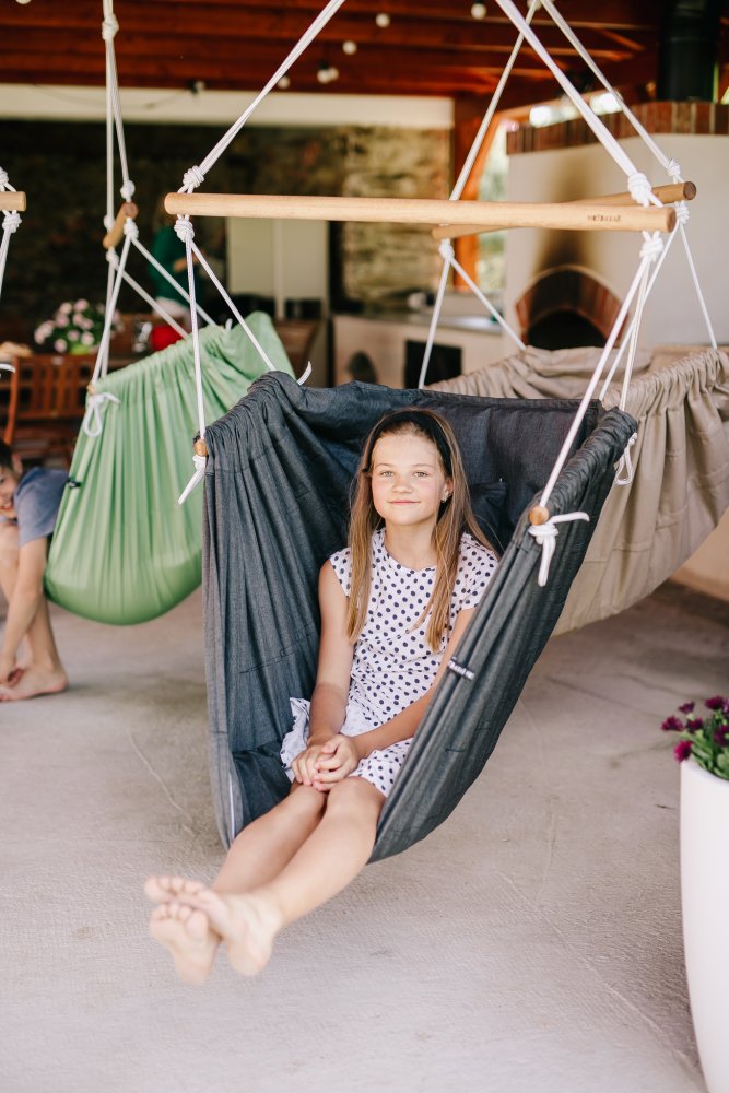 PRODUKTZWECKHojdavak MAXI ist ein originelles aufhängbares Textil-Sitzmöbel, das für Erwachsene und Jugendliche bestimmt ist, das wir nach eigenem Entwurf in Tschechien herstellen. Dank des Kissens können Sie sich darin bequem ausruhen, ein Buch lesen oder auf andere Weise entspannen, wie es Ihnen gefällt.Für die Produktion verwenden wir eine Mischung aus 100 % Polyester mit wasserabweisender Ausrüstung und dem Öko-Tex Standard 100 Gesundheitszertifikat (mehr zu den Eigenschaften des Stoffes weiter unten). Wir nähen die Säcke aus doppeltem Stoff für Ihre Sicherheit, Ihren Komfort und das angenehme Aussehen des Schaukelsitzes. Andere Teile lassen wir auf Bestellung anfertigen oder kaufen sie von tschechischen Lieferanten. Mit dem Kauf des Produkts unterstützen Sie die Entwicklung von geschützten Werkstätten.Das Hängesessel Hojdavak MAXI dient zum Schaukeln, Sitzen und Liegen – die maximale Tragfähigkeit beträgt 120 kg.Der Stoffhersteller empfiehlt die Verwendung von Produkten mit UV-Filter (Zeltimprägnierung) zum Schutz von Produkten, die direkter Sonneneinstrahlung ausgesetzt sind.PRODUKT ENTHÄLTTextilbeutel aus 100 % Polyester mit Zertifikat – die Länge des Beutels im Liegebereich beträgt 140 cmPUR-Matratze zur Füllung der Tasche – Größe 140 x 40 cmSchutzbezug für die Matratze mit Reißverschlusshölzerner Spreizer aus Hartholzbuche – Länge 80 cm2 Stück Holzträger aus Hartholzbuche – Länge 40 cmKarabinerKissen mit Bezug und Reißverschluss (30×50 cm) GebrauchsanweisungTasche aus VliesstoffTASCHENSTOFFSehr strapazierfähiges, weich im Griff, dicht gewebtes Gewebe, 100 % Polyester, mit wasserabweisender Ausrüstung. Dank des verwendeten Garns zeichnet sich der Stoff durch seine außergewöhnlich hohe Festigkeit und Abriebfestigkeit mit einem glänzenden und attraktiven Aussehen aus. Bei diesem Stoff werden Sie vor allem die Funktionalität und die hohe Festigkeit, Abrieb- und Reißfestigkeit zu schätzen wissen.Zertifizierung: Der Stoff wird nach dem Standard Ökotex 100 Klasse 2 hergestellt. Er ist für den direkten Hautkontakt geeignet, enthält keine Schwermetalle, Nickel oder AZO-Farbstoffe.WO MAN SICH AUFHÄNGEN SOLLTEFür Teenager empfehlen wir, die Schaukel direkt in ihrem Zimmer oder im Wohnzimmer aufzuhängen, wo die ganze Familie die meiste Zeit verbringt. Ideal zum Aufhängen ist auch der Garten (an einem Baum), oder auf der Terrasse oder dem Balkon. Kurz gesagt, überall dort, wo Sie gerne entspannen.SO HINZUFÜGENNutzen Sie für die Aufhängung jeden stabilen Punkt, der die entstehende Last von mindestens 200 kg zuverlässig trägt (Balken, Treppe, Ast, Dübel in der Decke usw.). Die häufigste Methode ist die Installation eines Hakens in der Decke. Für die sichere Installation von Befestigungstechnik an der Decke empfehlen wir eine Beratung durch Fachleute. Es kommt sehr auf das Material der Decke an (Beton, Ziegel, Holz, Gipskarton usw.) und seine Eigenschaften wie Bröckeligkeit oder Porosität.WICHTIGER HINWEISBeim Schwingen darf keine Reibung zwischen Metallteilen entstehen (z. B. ein Karabinerhaken an einer Schraube in der Decke). Nutzen Sie als Zwischenglied ein weißes oder schwarzes Seil zum Aufhängen, das Sie bei uns erwerben können.WARTUNGPflegen Sie das Produkt für eine lange Lebensdauer gemäß der Bedienungsanleitung. Bei Nutzung der Hängeschaukel im Freien schützen Sie die Hängeschaukel vor Regen und extremen Wetterbedingungen.WICHTIG! SICHERHEITSHINWEIS• Lesen Sie die Bedienungsanleitung sorgfältig durch und verwenden Sie das Produkt gemäß den Anweisungen – alle Änderungen und Modifikationen des Produkts, die sich negativ auf die Sicherheit und den Gesundheitsschutz auswirken, sind verboten. Hängen Sie die Wiege nicht in der Nähe von Feuer oder anderen Wärmequellen auf.• Lassen Sie das Kind nicht unbeaufsichtigt• Überschreiten Sie die zulässige Tragfähigkeit von 120 kg nicht – der Hersteller haftet nicht für Unfälle.• Überprüfen Sie regelmäßig den Zustand der verwendeten Seile – sie müssen in einwandfreiem Zustand sein, es darf nicht zu mechanischem Verschleiß kommen. Bei Feststellung auch nur geringfügiger Beschädigungen das Seil sofort austauschen!• Überprüfen Sie regelmäßig die Festigkeit der Aufhängung – hängen Sie die Hängematte nur an Stellen auf, die die entstehende Last sicher tragen. Achtung bei Gipskartondecken oder anderen Verkleidungen. In diesem Fall konsultieren Sie die Aufhängung immer mit einem Fachmann. Überprüfen Sie die Festigkeit von Schrauben und Halterungen mit einem Belastungstest mit Ihrem eigenen Gewicht.• Verpackungen – Plastiktüten und andere Verpackungen müssen nach dem Auspacken des Produkts außerhalb der Reichweite von Kindern unter 3 Jahren aufbewahrt werden