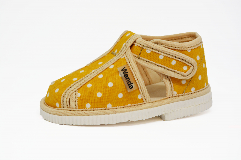 WANDA Kinder Hausschuhe geschlossene Spitze gelb – Punkte Unigröße S 17