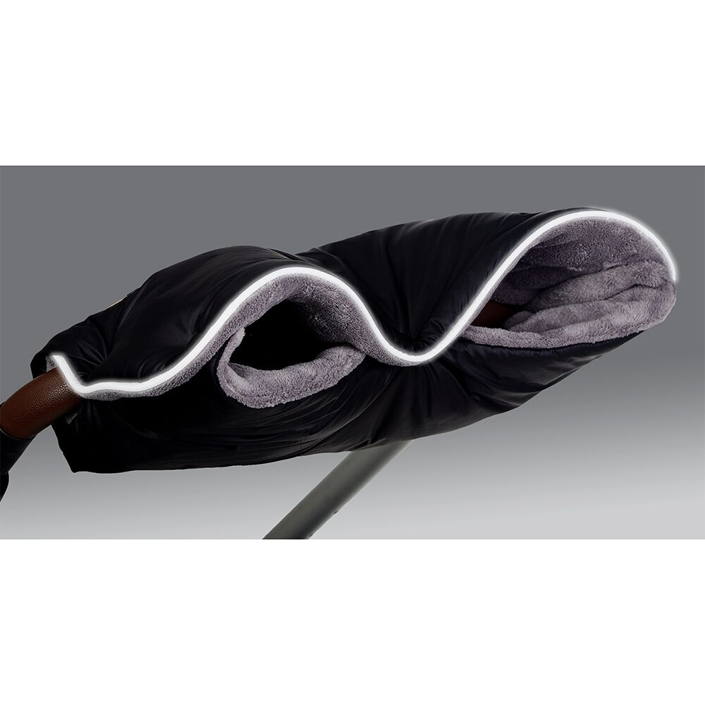 Der klassische Handwärmer ist ein unverzichtbares Zubehör für den Kinderwagen in den Wintermonaten, wenn er Ihre Hände vor Kälte, Wind, Schnee oder Regen schützt. Er ist aus hochwertigem, wasserabweisendem Material mit einer Füllung aus warmem und angenehmem Material gefertigt. Am Kinderwagen wird er mit Druckknöpfen befestigt, seitlich ist der Handwärmer mit einem Gummiband gerafft, damit er gut am Griff sitzt und keine Kälte eindringen und kein Wind hineinwehen kann. Er ist mit einem aufgenähten Logo mit einem reflektierenden Stern verziert. Zur Erhöhung der Sicherheit bei Bewegung im Freien bei schlechten Sichtverhältnissen wird ein reflektierendes Element verwendet – eine Paspel, die dank der Powerbank leuchtet. Im Inneren des Handschuhs befindet sich eine Reißverschlusstasche mit einem natürlichen Textilkabel. Powerbank ist nicht im Lieferumfang enthalten! Die Handschuhe sind auch für Väter ausreichend geräumig. Sie ergänzen farblich den Fußsack aus der Kollektion.