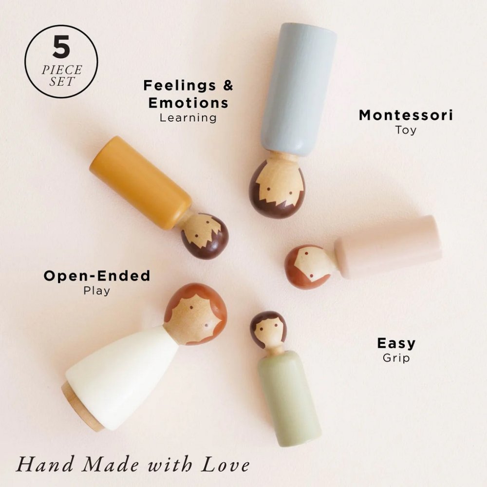 Dubois Wooden Family Dolls, das ist eine kleine Holzfamilie für Ihr endloses Spielvergnügen. Bringen Sie mit diesem handgefertigten Set den Zauber der Natürlichkeit und schlichter Eleganz in die Kinderspiele. Das Set aus fünf Holzpuppen ist aus einem Stück FSC®-zertifiziertem Holz gefertigt, jedes Stück ist ein Unikat und hat eine feine, natürliche Maserung und eine sanfte, neutrale Farbgebung.Die Puppen sind minimalistisch gestaltet, plastikfrei, mit einer glatten Oberfläche und einem ungiftigen, wasserbasierten Lack, ideal für kleine Hände und sicheres Kinderspiel. Dank ihrer einfachen Form und ihres natürlichen Aussehens fördern sie die Entwicklung von Fantasie und kreativem Erzählen.Dieses Set ist die perfekte Ergänzung für Puppenhäuser, Mini-Welten, Spielsets oder als eigenständiges Set für fantasievolles Spielen. Es ist ein umweltfreundliches, stilvolles und langlebiges Spielzeug, das kreatives Spielen, Feinmotorik und soziale Interaktion fördert. Haupteigenschaften: 5 Stück Holzpuppen echte Familie, ideal für Puppenhäuser, kleine Welten oder freies SpielFSC® Holz und umweltfreundliche Farben minimalistisches und neutrales Design Förderung von Kreativität und Fantasie, Kinder können den Puppen eigene Geschichten und Rollen zuweisenFörderung von Feinmotorik, Kreativität und sozialem Spiel ideal für die Entwicklung von Vorstellungskraft und Kommunikationkompatibel mit Puppenhäusern und anderem Zubehör einfache Integration in eine größere Spielwelt Die Marke und das FSC®-Zertifikat (Forest Stewardship Council) garantieren, dass das Holz, aus dem das Produkt hergestellt wurde, nicht illegal geschlagen wurde und aus Wäldern stammt, die schonend oder naturnah bewirtschaftet werden und in denen strenge ökologische und soziale Anforderungen eingehalten werden. Das FSC®-Zeichen auf dem Produkt bedeutet, dass Sie mit Ihrem Einkauf dazu beitragen, Wälder zu schützen und eine schonende, verantwortungsvolle oder naturnahe Bewirtschaftung zu fördern, die unsere Wälder stabiler und gesünder macht, eine natürliche Artenzusammensetzung aufweist und den negativen Folgen des Klimawandels besser standhält.