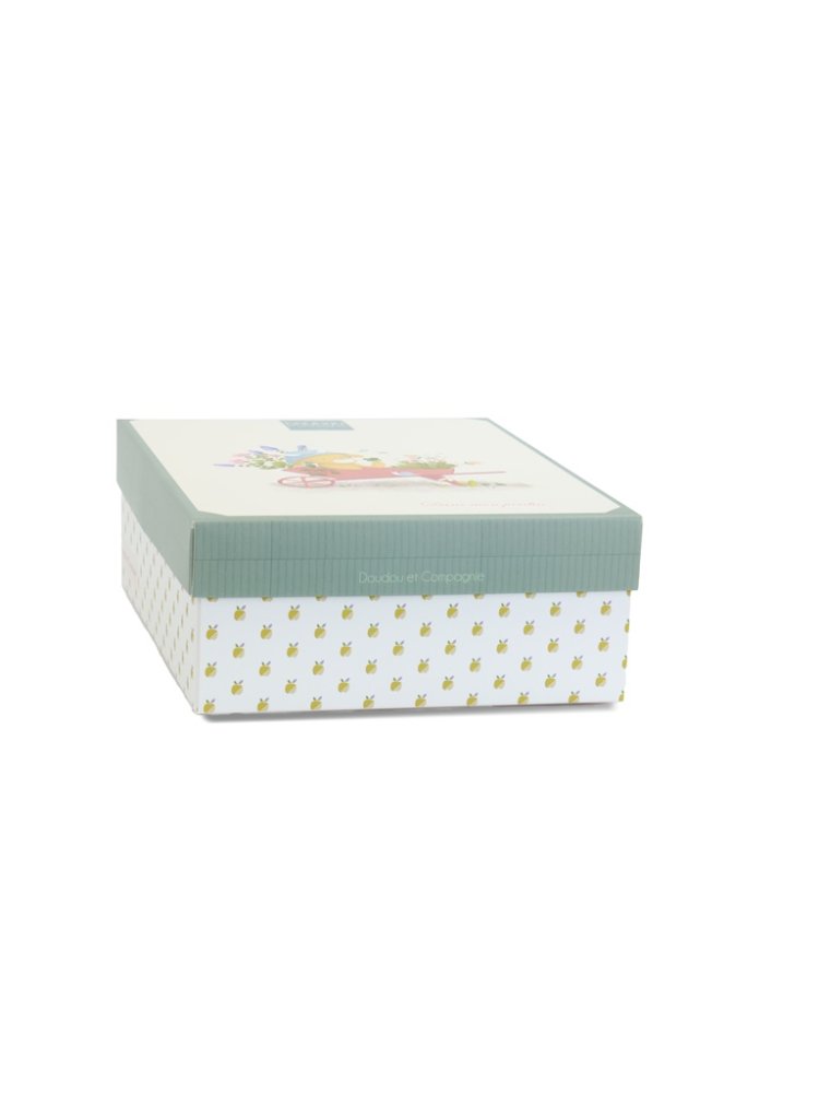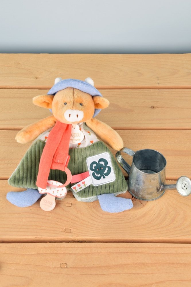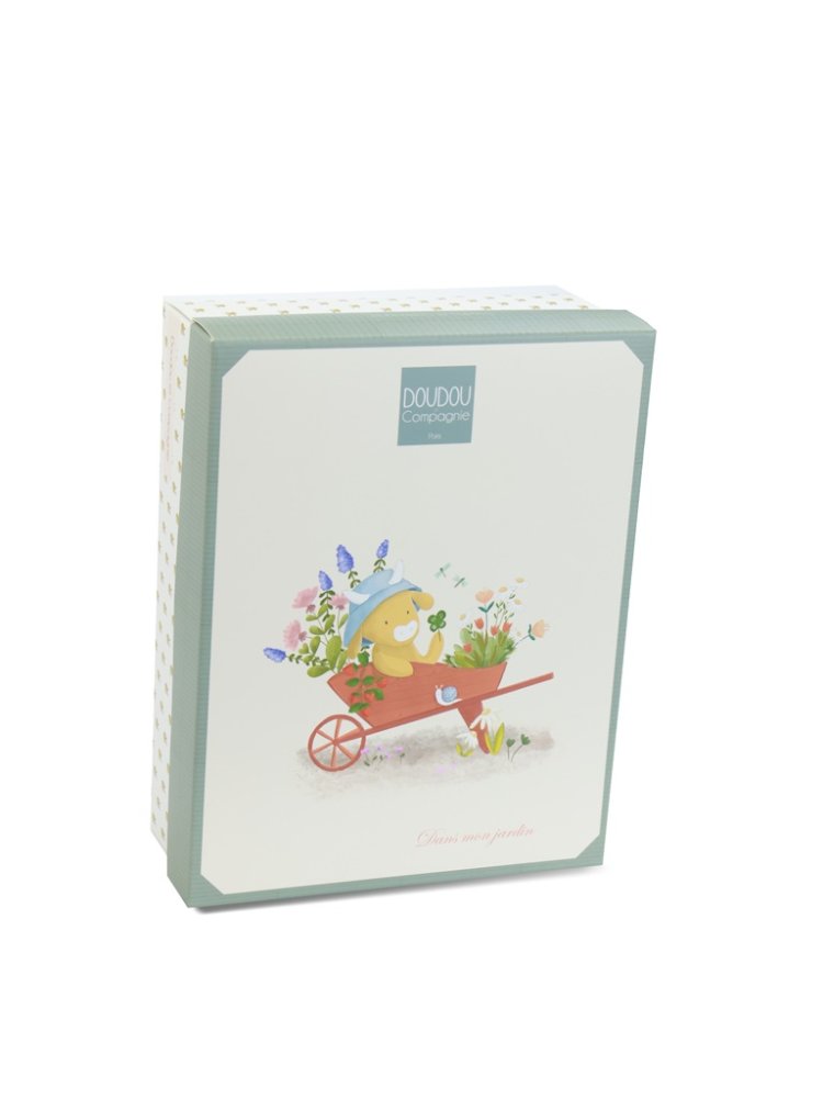 Die Kuh Anette in der Größe 19 cm aus der Kollektion „Mein Garten“ ist ein niedliches Spielzeug mit einem praktischen, integrierten Schnullerhalter. Sie ist in ein grünes Cordkleid mit einem geblümten Kragen gekleidet. Verschiedene Texturen laden zum Erkunden und Drücken ein und das Kind wird unterhalten und beruhigt. Das Spielzeug ist in einer hübschen Geschenkbox zur Aufbewahrung von Erinnerungen (Fotos und andere Erinnerungen an die Geburt des Babys) mit einem gereimten Text in Englisch auf der Unterseite verpackt. Ideales Geschenk für jeden Anlass.  Die Spielzeugkollektion „In my garden“ – Mein Garten ist von der Natur inspiriert. Die Spielzeuge sind in hübschen Geschenkboxen verpackt, die mit Aquarellfarben illustriert sind und an die Vielfalt und die Farben des Gartens erinnern, was auch durch ihre Namen wie Ciboulette (Schnittlauch), Aneth (Dill) und andere unterstrichen wird.  PflegeIn der Badewanne bei 30° waschen. Trocknen Sie es auf natürliche Weise oder im Trockner bei niedriger Temperatur. Haupteigenschaften: Schnullerhalter und Spielzeug 2 in 1Premium-Materialin Übereinstimmung mit den europäischen CE-NormenGeschenkbox zur Aufbewahrung von Erinnerungengeeignet von Geburt anideal als Geschenk