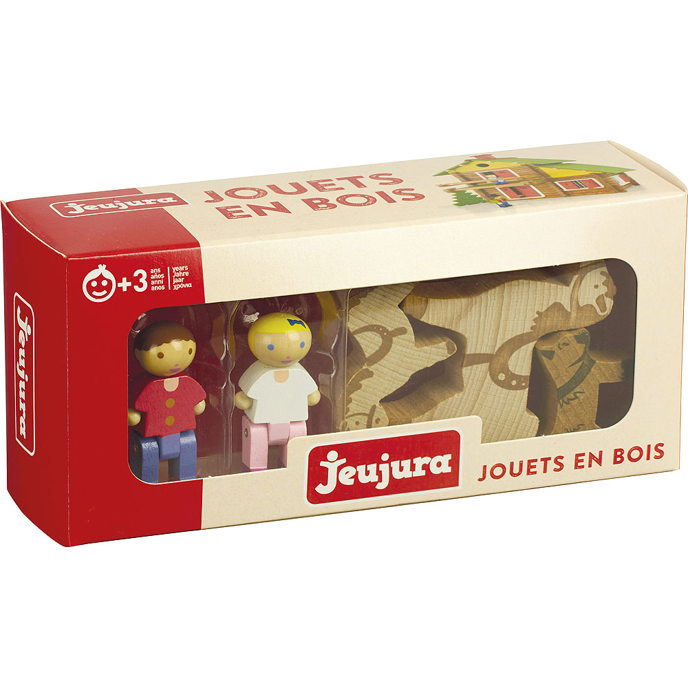 Das Figurenset mit Pferden ergänzt wunderbar den Baukasten einer Reithalle oder eines Stalls, aber auch andere. Zubehör zu den Baukästen Jeujura Constructions kann auch separat verwendet werden. Die menschlichen Figuren haben bewegliche Gliedmaßen. Sie werden in thematisch ausgerichteten Serien angeboten, können aber unterschiedlich kombiniert werden. Wie die Baukästen werden sie in Frankreich aus massivem Buchen- und Kiefernholz französischer Herkunft hergestellt und ausschließlich mit Farben und Lacken auf Wasserbasis behandelt. Haupteigenschaften:2 bewegliche menschliche Figuren und 3 TierfigurenHergestellt in Frankreich