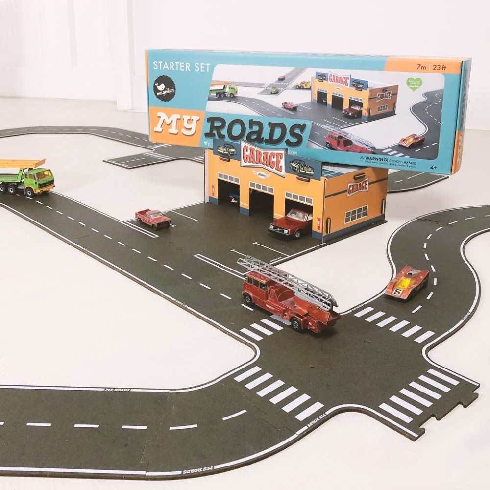 Das 44-teilige Set enthält Straßenabschnitte, Kurven, Kreuzungen und eine große Garage im zeitlosen Retro-Design. Die Straßenteile lassen sich beliebig mit anderen Sets von MyRoads kombinieren. Sie sind leicht zu verbinden und bestehen aus nachhaltigem, widerstandsfähigem Material aus recyceltem Holz. Dank der Vielfalt an Strecken und den endlosen Möglichkeiten, sie zusammenzusetzen, können Kinder ihrer Kreativität freien Lauf lassen und sich auf stundenlangen, aufregenden Spielspaß vorbereiten! Hinweis: Da es sich um Produkte aus Naturholz handelt, können geringfügige Farbabweichungen auftreten. Autos sind nicht im Lieferumfang enthalten. Haupteigenschaften: Enthält 6 lange Geraden, 2 Geraden mit Kreuzungen, 6 kurze Geraden, 8 große Kurven, 6 kleine Kurven, 4 Endstücke, 4 kleine Kreuzungen, 1 dreiteilige Grundplatte und 1 fünfteilige Garagekompatibel mit allen Produkten der MyRoads-Reihefördert Fantasie, Geschicklichkeit und Koordinationhergestellt aus nachhaltigen und verantwortungsvoll gewonnenen natürlichen Materialien