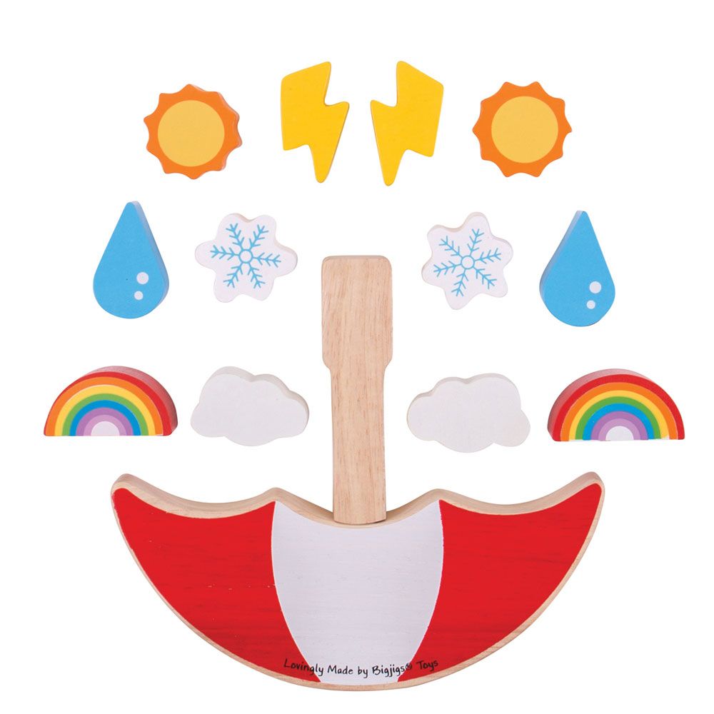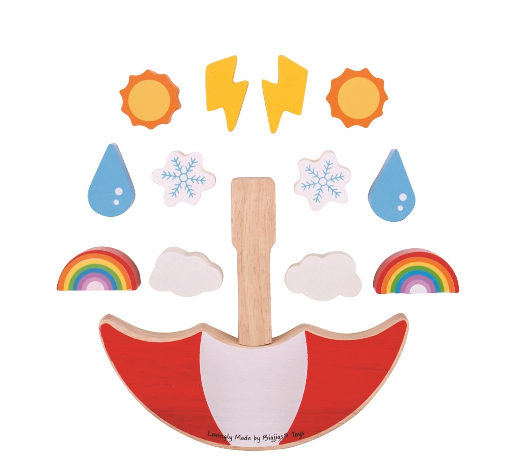 Wie hoch können Sie verschiedene Wetterteile ausbalancieren? Dies ist ein Spiel der Fähigkeit und Geduld, das die ganze Familie begeistern wird! Die Spieler müssen abwechselnd ein Stück nehmen und es auf den Regenschirm legen, ohne ihn umzuwerfen. Der letzte Spieler, der erfolgreich ein Stück hinzufügt, gewinnt! Enthält 6 Wettersymbole, darunter Regenbogen, Bewölkung, Schneeflocke, Regentropfen, Sonne und Blitz. Fördert die Hand-Augen-Koordination, die Feinmotorik und die Geschicklichkeit. Unterstützt logisches Denken. Hergestellt aus hochwertigen, verantwortungsvoll gelieferten Materialien. Entspricht den aktuellen europäischen Sicherheitsstandards. Besteht aus 13 Teilen. Haupteigenschaften: enthält 13 TeileFördert die Hand-Augen-Koordination, die Feinmotorik und die Geschicklichkeit