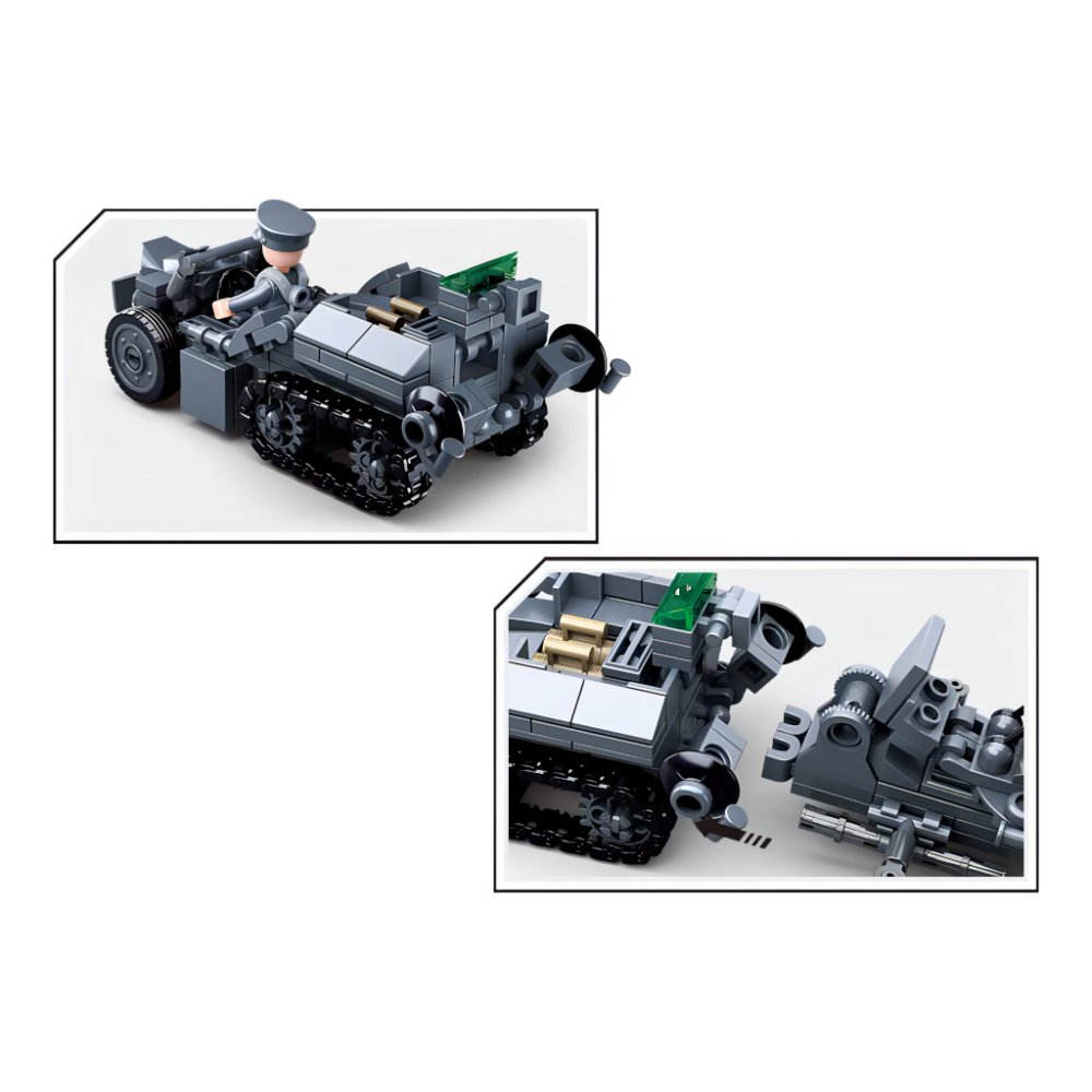 Raketenwerfer und Flugabwehrkanone, gepanzertes Fahrzeug und spezielles Kettenmotorrad können in diesem Modell miteinander kombiniert werden. Die mobile Angriffseinheit ist bereit zum Verlegen! Die innovative Baukasten von Sluban ist mit ähnlichen Baukästen vieler anderer bedeutender Hersteller kombinierbar. Sie werden aus hochwertigem, unbedenklichem und widerstandsfähigem ABS-Kunststoff hergestellt. Jeder Baukasten ist mit einer Montageanleitung versehen und in einer farbenfroh bedruckten Papierbox verpackt. Haupteigenschaften: 368 Teile und 4 Figuren 2 Schwierigkeitsstufen, durch Kombination des Sets kann ein großes Modell gebaut werden Innovative Figuren mit dreh- und schwenkbaren KörperteilenKompatibel mit Baukästen anderer Hersteller