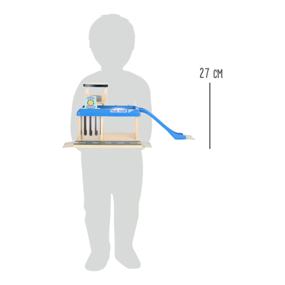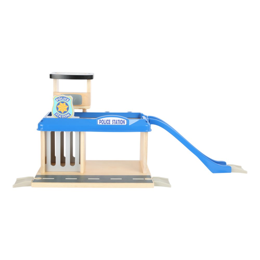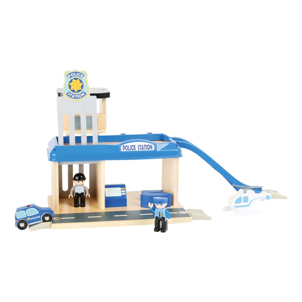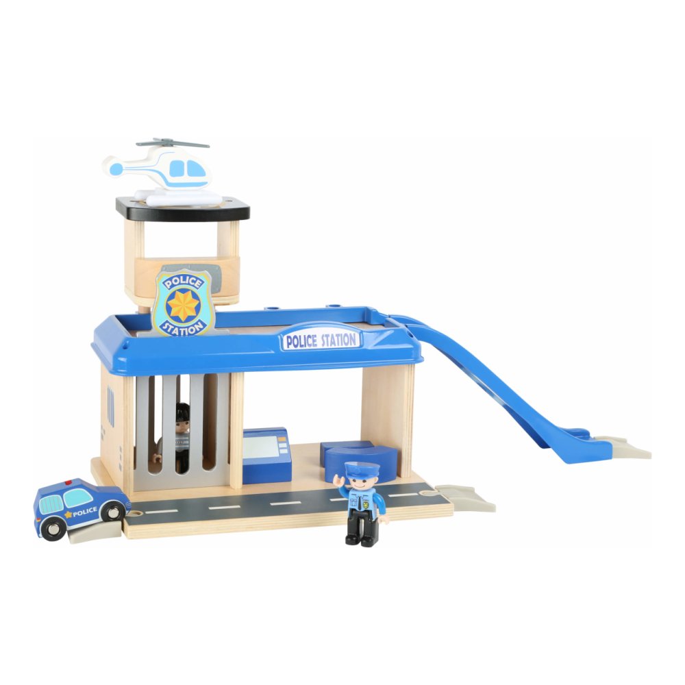 Kein Schurke entkommt mehr der Gerechtigkeit! Mit der Polizeistation können Kinder fantastische Abenteuer erleben, denn zum Zubehör gehören ein Polizeiauto und ein Hubschrauber sowie eine bewegliche Figur eines Polizisten und eines Verbrechers. Die Station bietet zwei Etagen und einen Turm mit Hubschrauberlandeplatz. Im Erdgeschoss befindet sich eine Zelle mit einem ausziehbaren Gitter und im Obergeschoss kann man mit Hilfe einer Auffahrrampe parken. Dank der Kombination aus starkem Sperrholz und robusten Kunststoffteilen kann das Spielzeug eine hohe Widerstandsfähigkeit und Lebensdauer bieten. Das bei der Herstellung verwendete Holz wurde aus nachhaltigen Quellen gewonnen und ist FSC®-zertifiziert. Es kann mit einer Vielzahl von Zubehörteilen erweitert werden und ist auch vollständig mit den Eisenbahnen anderer großer Hersteller kompatibel. Haupteigenschaften:Station, 2 Teile Innenausstattung, Auto, Hubschrauber und 2 Figuren2 Etagen mit Turm, Rampe und Zelle mit ausziehbarem Gitterrobuste und widerstandsfähige Ausführungauch mit Eisenbahnen anderer Hersteller kompatibelHergestellt aus 100% FSC®-Holz Die Marke und das FSC®-Zertifikat (Forest Stewardship Council) garantieren, dass das Holz, aus dem das Produkt hergestellt wurde, nicht illegal geschlagen wurde und aus Wäldern stammt, die schonend oder naturnah bewirtschaftet werden und in denen strenge ökologische und soziale Anforderungen eingehalten werden. Das FSC®-Zeichen auf dem Produkt bedeutet, dass Sie mit Ihrem Einkauf dazu beitragen, Wälder zu schützen und eine schonende, verantwortungsvolle oder naturnahe Bewirtschaftung zu fördern, die unsere Wälder stabiler und gesünder macht, eine natürliche Artenzusammensetzung aufweist und den negativen Folgen des Klimawandels besser standhält.