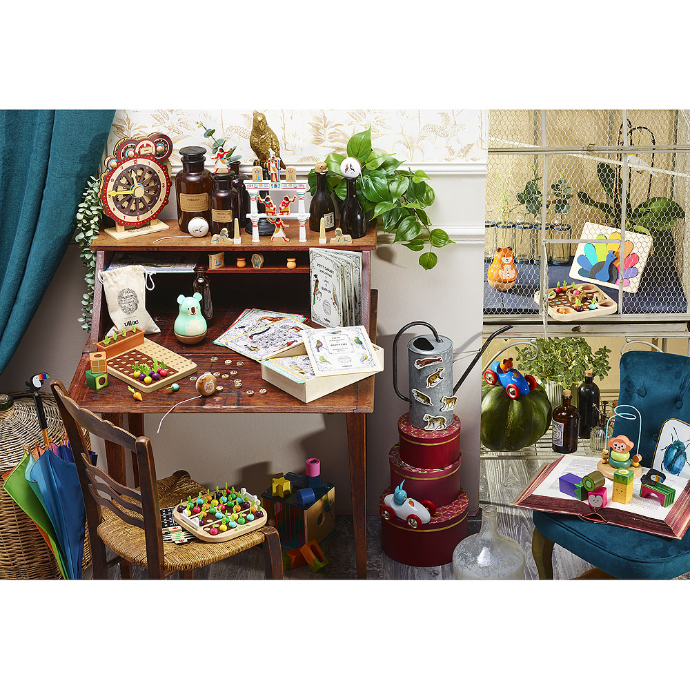 VILAC wandelt auch auf den Spuren alter Drechslerwerkstätten, die einst die Region berühmt machten: Handwerker, die in ihrer Werkstatt im Jura-Gebirge Holz liebevoll drechseln, glätten, schleifen, lackieren und verzieren. Es werden Buche, Hainbuche, Erle oder Buchsbaum aus den umliegenden französischen Wäldern verwendet, dieses Holz garantiert die Besonderheit und Qualität der Produktion. Es gibt so viele Geschichten über diese Handwerker, die ihr Handwerk lieben und es weitergeben konnten. Tatsächlich hat sich in den letzten 110 Jahren nicht viel geändert, und das ist ziemlich beruhigend. Die Gesten sind fast die gleichen, der Lärm der Maschinen, die Geräusche des Schnitzens und Lackierens von Holz erzeugen die gleiche Melodie. Und vor allem sind in der Werkstatt immer noch Buchenholzspäne zu riechen, die an alte Erinnerungen erinnern. Wenn das Unternehmen in Frankreich kein Know-how für einige Spielzeuge hat, stellt es diese im Ausland her, wo es die gleichen Qualitätsanforderungen stellt. Bei der Herstellung wird auf die Verwendung aller Kunststoffteile verzichtet, außer in Fällen, in denen dies für die Sicherheit der Kinder erforderlich ist. Das gilt auch für Produktverpackungen. VILAC stellt hohe Qualitäts- und Sicherheitsanforderungen an die Herstellung von Spielzeu