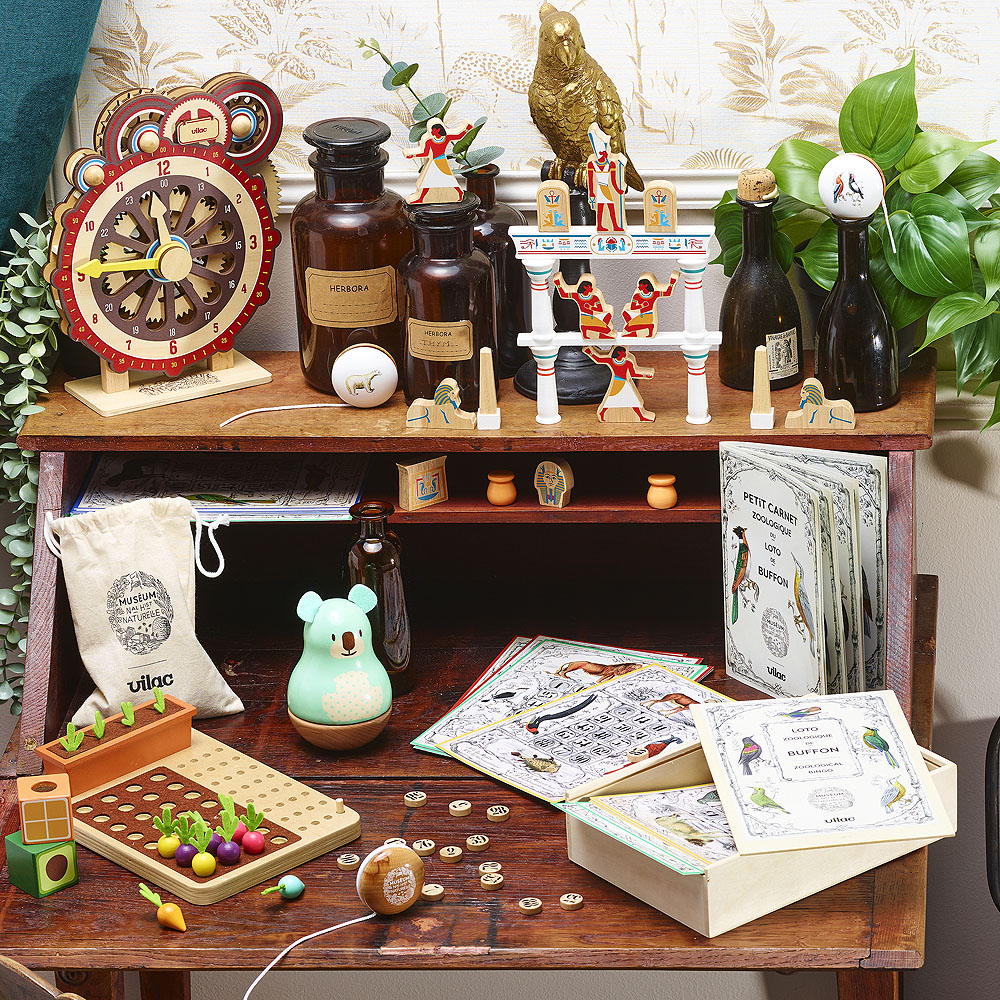 Loto ist ein traditionelles Spiel, das Sie auch unter dem Namen Bingo kennen. Das Spielprinzip ist einfach. Die Kinder nehmen die Spielkarten des Lottos auseinander und losen dann nacheinander die Zahlen aus. Es gewinnt derjenige, der seine Karte zuerst vollständig ausfüllt. Die Kinder üben dabei ihre Wahrnehmung, Beobachtungsgabe, ihren Wortschatz und ihr logisches Denken.Dieses Spiel wurde in Zusammenarbeit mit dem Nationalen Naturkundemuseum in Paris, dem Muséum national d'Histoire naturelle, entwickelt. Haupteigenschaften: enthält 314 Teilefördert die motorischen Fähigkeiten und das logische Denken der Kinderentwickelt in Zusammenarbeit mit dem Nationalen Naturkundemuseum in Paris Die Zusammenarbeit von Vilac x Muséum national d'histoire naturelle (Nationalmuseum für Naturgeschichte) ist eine Neuheit des Jahres 2023. Georges-Louis Leclerc, Graf von Buffon (1707-1788), war fast 50 Jahre lang, von 1739 bis zu seinem Tod, Intendant des königlichen botanischen Gartens Frankreichs. Sein Werk Histoire naturelle (Naturgeschichte) hatte in 36 illustrierten Bänden unmittelbar nach der Veröffentlichung einen außergewöhnlichen Erfolg. Die in dem Buch enthaltenen Tiere waren eine Inspiration für bildende Kunst, Mode, Dekoration, Bildungswerke und Kinderbücher. Dies beweist das Buffon-Memoryspiel, ein illustriertes Spiel, das um 1840 in Paris herausgegeben wurde. Das Memoryspiel mit 96 Tieren auf 24 Karten wurde von Nicolas Fleuri Jannin hergestellt. Eine reproduzierte Kopie wird im Nationalmuseum für Naturgeschichte in Paris aufbewahrt.