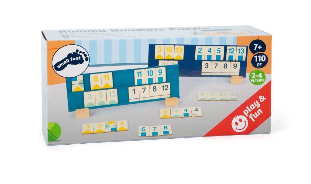 Ein Spiel für die ganze Familie! Rummy ist ein klassisches Logikspiel mit Zahlen. Es ist beliebt bei Kindern und Erwachsenen. Das Holzspiel im modernen Design besticht nicht nur durch seine Farbkombination. Es ist auch für Farbenblinde geeignet, die Teile passen nicht nur farblich, sondern auch durch grafische Markierungen zusammen, die auf den Teilen auch ertastet werden können. Ideales Spiel für unterwegs.Wer legt alle Teile als Erster ab? Der robuste Ständer aus massivem Holz ist stabil und kippt auch unter dem Gewicht der Spielsteine nicht um. Haupteigenschaften: eines der meistgespielten Familienspiele der Welt geeignet für FarbenblindeSpielsteine können im beiliegenden Rückenteil verstaut werdenideal für Reisen Kurze Spielanleitung:Legen Sie die Spielsteine vor Spielbeginn mit den Zahlen nach unten auf den Tisch. Jeder Spieler nimmt sich einen Spielstein. Der Spieler mit der niedrigsten Zahl beginnt. Wenn 2 Spieler spielen, nimmt jeder 10 Spielsteine. Wenn 3 bis 4 Spieler spielen, nimmt jeder 7 Spielsteine. Verteilen Sie diese Spielsteine dann auf Ihren Ständern, so dass die anderen Spieler sie nicht sehen können. Legen Sie die restlichen Steine auf die Seite. Ziel des Spiels ist es, die Spielsteine in einer Kombination aus Drilling oder Sequenz auf dem Tisch abzulegen. Sie können Joker-Spielsteine in jeder Kombination für Drillinge und Sequenzen verwenden. Sie können aber nur einen Joker für jede Kombination verwenden. Wenn Sie die Spielsteine nicht ablegen können, nehmen Sie einen Spielstein vom Nachziehstapel, sonst setzen Sie eine Runde aus…