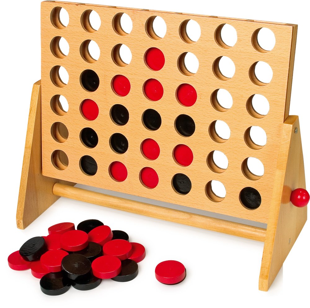 Ein klassisches Spiel für zwei Spieler in einer großen Version. Das Strategiespiel für Jung und Alt trainiert spielerisch das logische Denken. Die Spieler versuchen, 4 Steine hintereinander zu bekommen, und zwar horizontal, vertikal oder diagonal. Wer wird es schaffen?! Wenn das Spiel beendet ist, drehen Sie einfach den Holzrahmen um und schütten Sie die Steine aus. Und Sie können wieder spielen! Haupteigenschaften: klassisches Holzspiel für zwei Personenhaptisch angenehme HolzspielteileFördert Konzentration, Logik und Geschicklichkeit