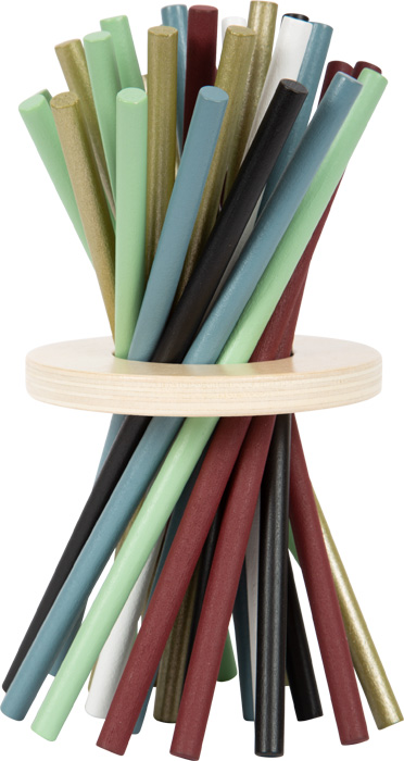 Sind Sie die übliche Version von Mikado leid und suchen nach frischer Unterhaltung? Probieren Sie seine originelle Variante mit einem natürlichen Holzring aus. Würfeln Sie und versuchen Sie, die Stäbe der entsprechenden Farben nacheinander zu lösen, bis Sie unachtsam den Ring oder einen anderen als den gezogenen Stab bewegen. Üben Sie spielerisch Konzentration, Geduld und Geschicklichkeit. Lange Stunden Spielspaß für die ganze Familie sind garantiert! Haupteigenschaften: entwickelt logisches Denkentrainiert die Motorik