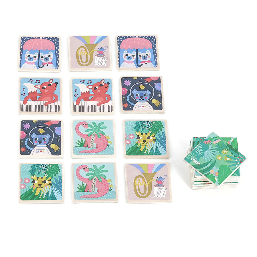 Suchen Sie ein originelles Memory-Spiel? Möchten Sie einen Fuchs sehen, der Klavier spielt, einen Koala in den Sternen, zwei Bären unter einem Regenschirm, einen Hund, der einen Lolli hält, oder einen Elefanten, der Roller fährt? Begeben Sie sich in die fantastische Tierwelt in Begleitung der wunderschönen Illustrationen von Michelle Carlslund. Die Spielsteine sind in ihren Abmessungen an die Hände der kleinsten Kinder angepasst. Sie sind aus widerstandsfähigem Holz gefertigt und mit einem hochwertigen Aufdruck versehen. Pexeso ermöglicht es Kindern, ihren Wortschatz, ihr Gedächtnis und ihren Beobachtungssinn zu erweitern. Enthält 48 Holzteile. Das Spiel wird in einer wunderschön illustrierten Kartonverpackung geliefert, die im Regal leicht zu einer unübersehbaren Dekoration wird. Haupteigenschaften: 48 SpielsteineDesign Michelle Carlslundrobustes Holzdesignpraktische und attraktive Verpackung Reisen Sie mit uns in die naive und elegante Welt der dänischen Illustratorin Michelle Carlslund, eine Welt sanfter Farben, die voller niedlicher Bären und freundlicher Vögel ist. Im Jahr 2010, als Michelle noch Grafikdesign studierte, druckte sie ihre Illustrationen zu Hause aus und versuchte, sie auf einem Designmarkt zu verkaufen, wo sie großen Erfolg hatten! Mehrere kleine Geschäfte wollten anfangen, ihre Kreationen zu verkaufen, und so kam sie auf die Idee, ein eigenes Unternehmen zu gründen. Michelle entwickelte sich schnell zu einer anerkannten, unabhängigen Illustratorin. Heute können ihre umweltfreundlichen Grafiken weltweit in Designboutiquen, Schreibwarenläden und Kindergeschäften erworben werden. Michelle lässt sich von allem um sie herum inspirieren. Ihre Kreationen sind zart und poetisch, ein stilisierter und kindlicher Stil, der perfekt mit den Spielzeugen der Firma Vilac harmoniert. „Ich bin eine Pommes-liebende, zeitoptimistische Schöpferin von Öko-Postern und freiberufliche Illustratorin mit Sitz im dänischen Kopenhagen“, würde die Illustratorin Michelle Carlslund sagen, wenn sie sich in einem Satz beschreiben müsste.