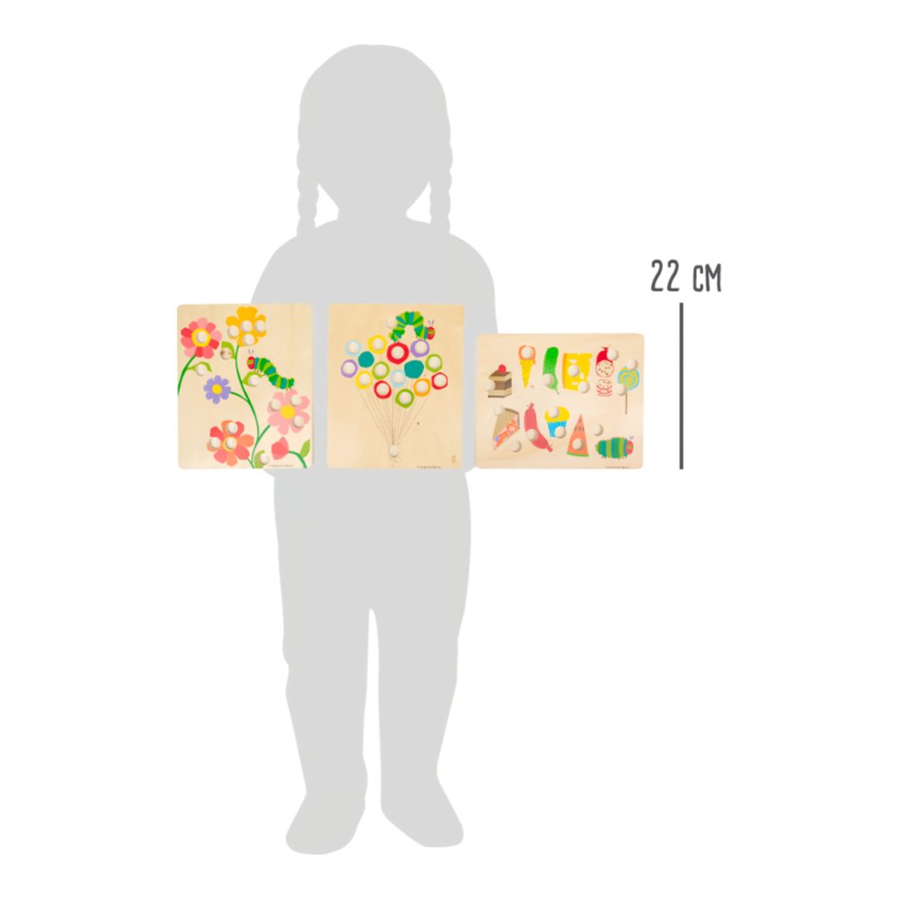 Small foot Buntes Spiel Caterpillar – Welche Farbe gehört wohin? Dieses Spiel enthält 95 Teile, die farblich dem Spielbrett zugeordnet werden müssen. Drei Spielbretter mit insgesamt sechs Bildern. Ein Lernspiel, das die Farberkennung und die Feinmotorik fördert. Die Spielbretter aus massivem Holz haben einen sehr hochwertigen Druck, sie können in einem Stoffbeutel aufbewahrt werden und sind ideal für Reisen. Haupteigenschaften: enthält 95 Teileübt das Erkennen von Farbenideal für Reisen