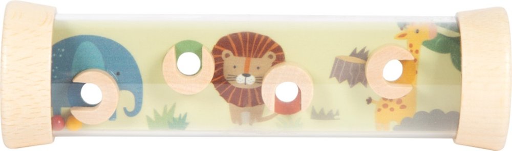 Dieses doppelseitige Labyrinth wird nicht nur Kinder, sondern auch Erwachsene begeistern. Es ist nicht nur ein lustiges Spiel, sondern auch eine Rassel. Das Kugel-Labyrinth in einer robusten, transparenten Röhre fördert die motorischen Fähigkeiten von Kindern. Und es wird nicht einfach sein, alle 4 bunten Holzkugeln, die darin herumrollen, gleichzeitig in die Löcher zu platzieren. Auf beiden Seiten des Labyrinths treffen Kinder auf wilde Tiere wie Krokodil, Zebra, Löwe, Giraffe und andere. Die farbenfrohe Gestaltung in sanften Farben in Kombination mit dem Aussehen von Naturholz ist für Kinder attraktiv und regt ihre Fantasie an. Die Größe des Labyrinths ist für Kinderhände geeignet. Es trainiert Geschicklichkeit, Konzentration und Geduld und unterhält Kinder nicht nur zu Hause, sondern auch unterwegs. Es eignet sich auch als Geschenk. Haupteigenschaften: doppelseitiges Labyrinth mit 4 bunten Kugeln und Rassel in einemAussehen von Naturholz mit angenehmen Farben mit einem Motiv von Wildtierenregt die Fantasie antrainiert Geschicklichkeit, Konzentration und Geduldauch für Reisen oder als Geschenk geeignet
