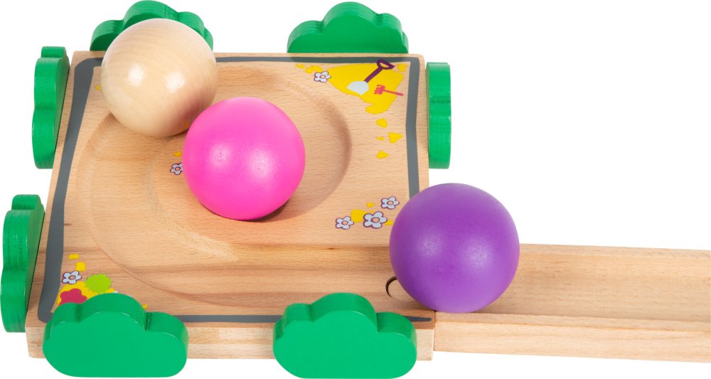 Kugelbahn-Spaß für die Kleinsten! Die Teile dieser Kugelbahn lassen sich einfach zusammensetzen, so dass die große, bunte Kugel ihr Rennen wirklich schnell starten kann! Auf dieser Bahn finden Sie eine Rutsche, eine Mühle und eine Schaukel. Die Bahn ist aus natürlichem Holz mit bunten Elementen. Kinder lernen spielerisch etwas über Ursache und Wirkung und trainieren auch ihre Beobachtungsgabe, indem sie sich bewegende Objekte beobachten. Einfaches Design, das die Sinne der Kinder nicht überfordert, die Teile sind groß genug, damit die Kinder sie nicht einfach verschlucken können. Die Teile sind für Kinder leicht zu greifen. Dank des modularen Designs können Kinder viele verschiedene Arten von Bahnen bauen. Sie ist auch mit der Kugelbahn Baumaschinen LE11382 kompatibel. Ältere Kinder können anstelle von Kugeln Autos auf die Bahn schicken.  Haupteigenschaften 11-teilige Bahn3 KugelnSchaukelRutscheMühleKompatibel mit LE11382