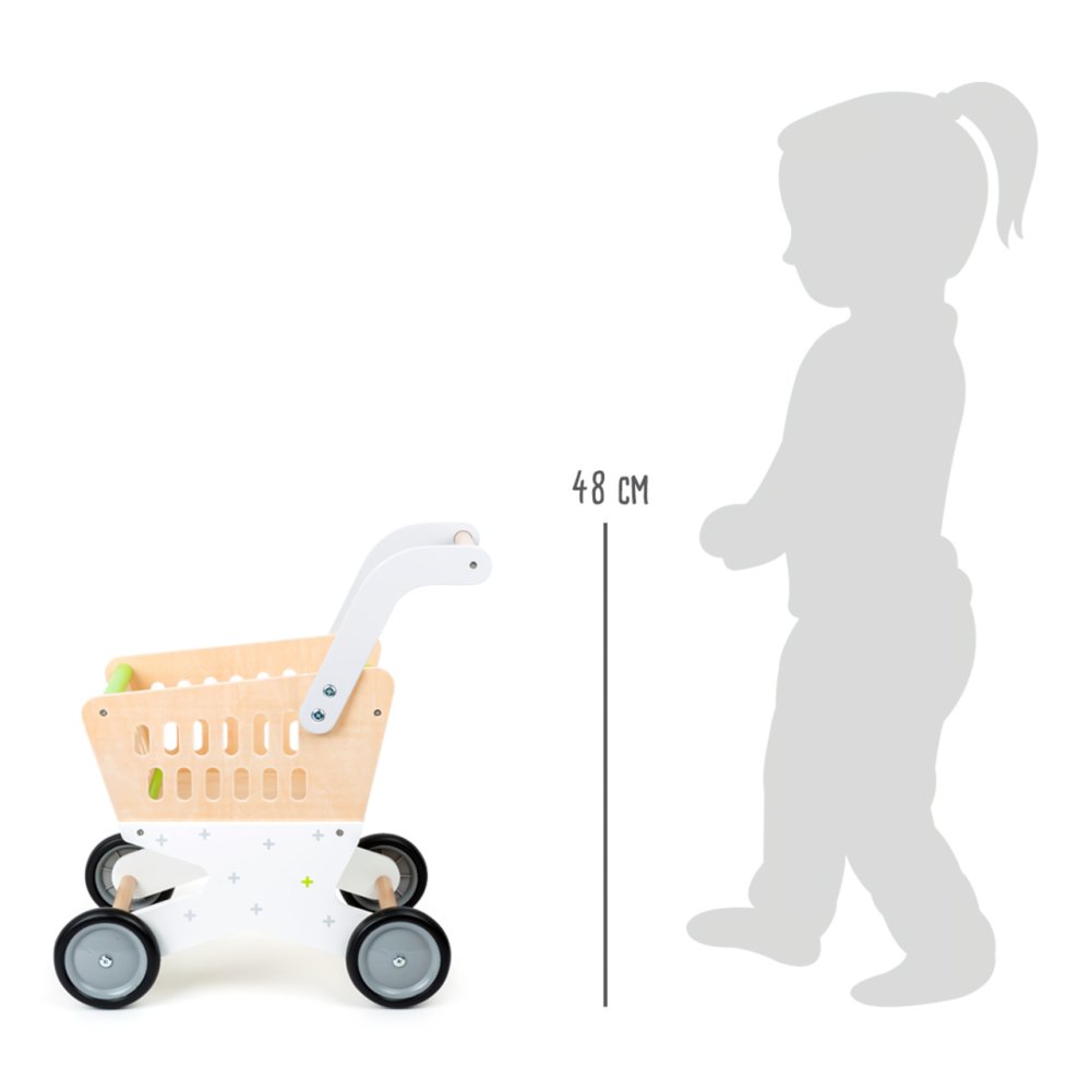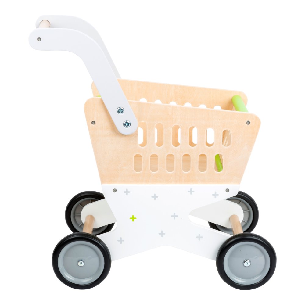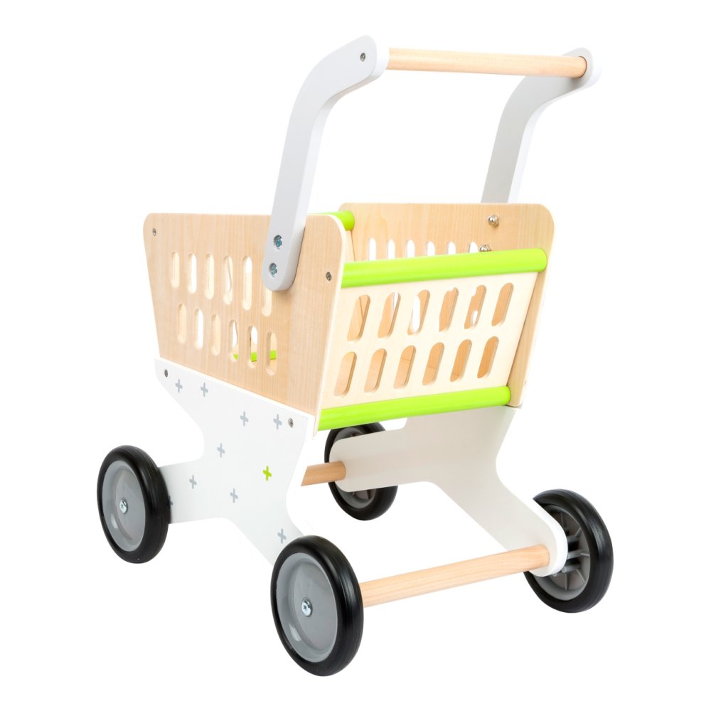 Einkaufen nur mit einem exklusiven und eleganten Wagen! Ergänzen Sie damit ein Geschäft oder einen Stand und lassen Sie Ihre Kinder fantastische Spiele spielen, durch die sie ihre Kommunikationsfähigkeiten entwickeln können. Er ist leicht zu bedienen und bietet ausreichend Platz, der auch zur Aufbewahrung von Spielzeug und zum Transport von Stofftieren oder Puppen genutzt werden kann. Seine Gummiräder sorgen für einen leisen, kultivierten Lauf auf allen Arten von Oberflächen. Die solide und robuste Holzausführung kann eine lange Lebensdauer bieten und ergänzt mit ihrer Farbgebung geschmackvoll jedes Kinderzimmer. Das Produkt muss montiert werden und wird mit einer bebilderten Montageanleitung geliefert. Haupteigenschaften:universell einsetzbarleiser, kultivierter Laufrobuste und widerstandsfähige Holzausführung