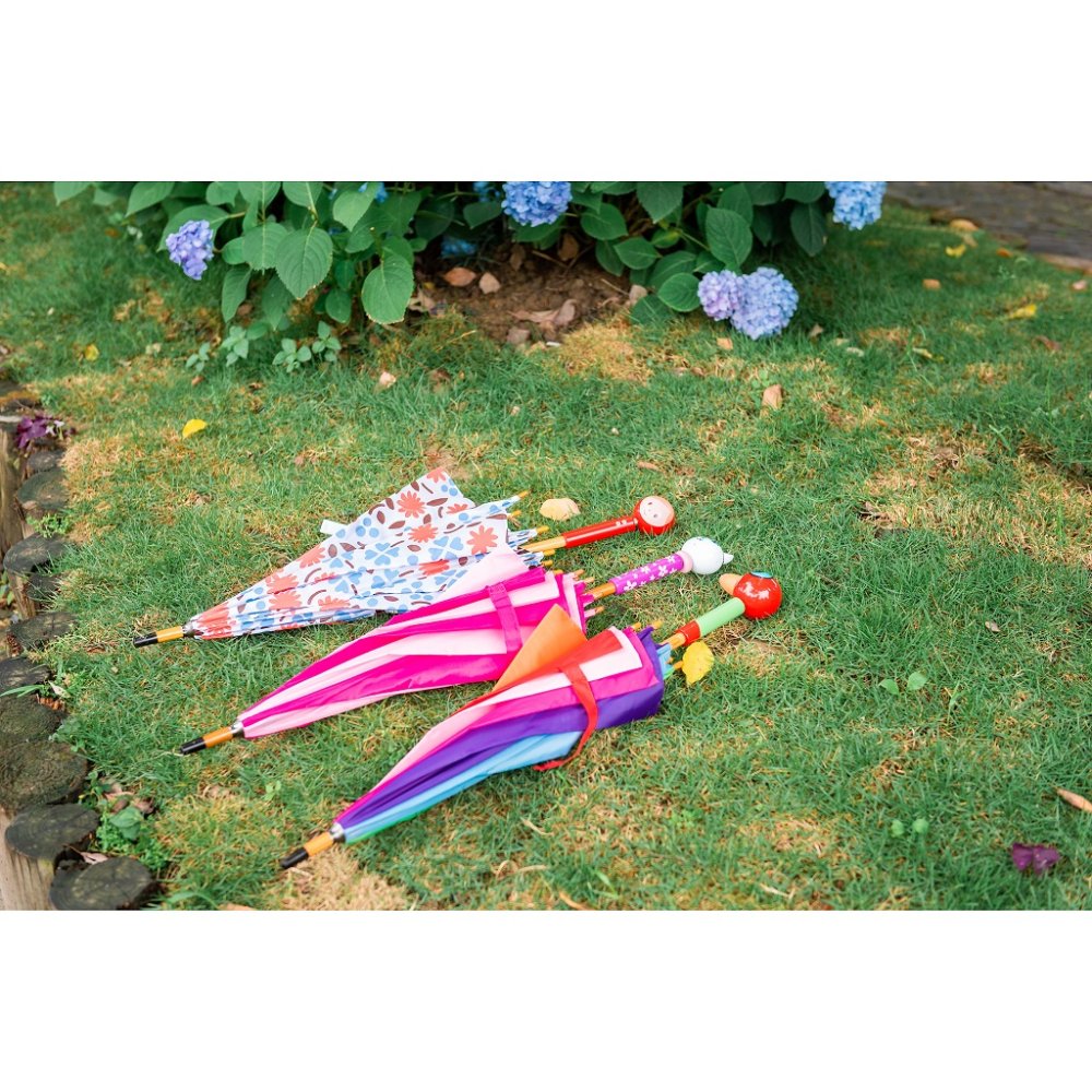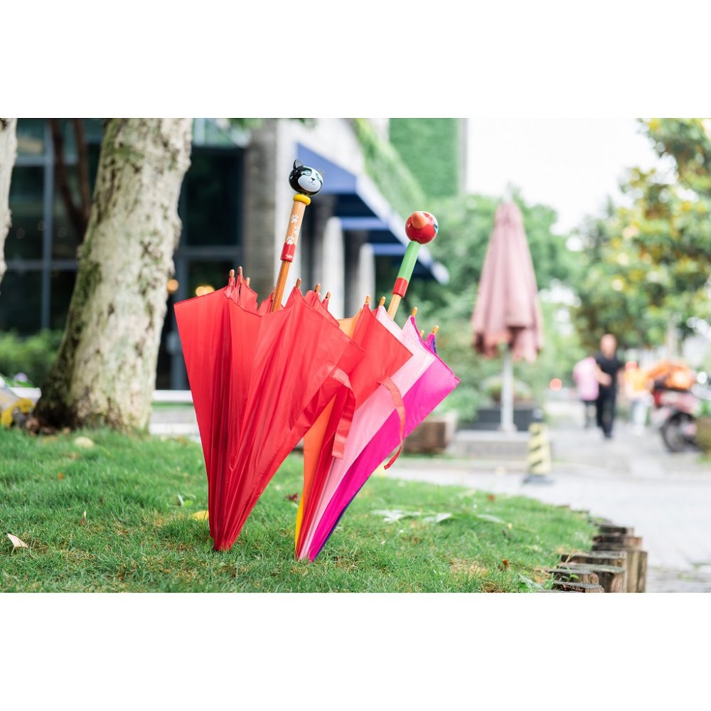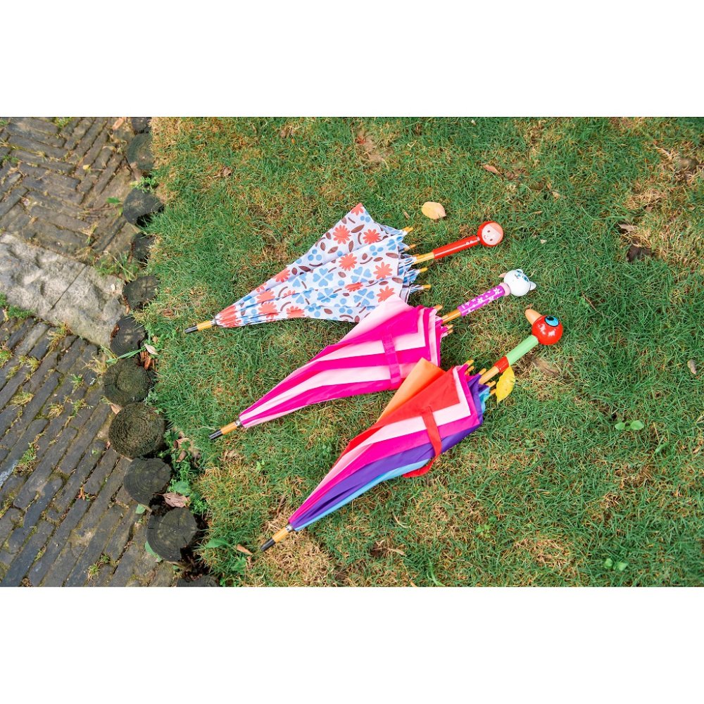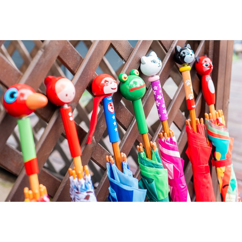 Schöner, farbenfroher Regenschirm mit einer Ente am Griff. Hergestellt aus lackiertem Holz in Frankreich. Haupteigenschaften: Hergestellt in FrankreichMetallkonstruktion, Holzgriff