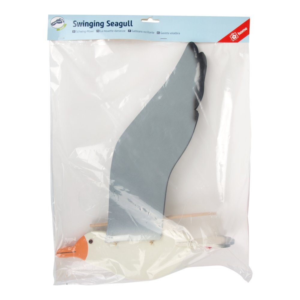 Die große Holzmöwe spreizt ihre Flügel auf eine Breite von ca. 74 cm aus. Durch Ziehen an der Schnur mit der Perle lassen sich seine mächtigen Flügel bewegen. Er fliegt! Wohin er fliegt und was er dort sehen wird, ist eine Frage Ihrer Fantasie. Haupteigenschaften: Hergestellt aus hochwertigem, massivem Holz Dekoratives Element